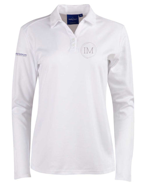 Ladies Victory Polo L/S....Embroidered IM Logo on the L/C and Praesidium Logo Right Sleeve....Shi/Emb